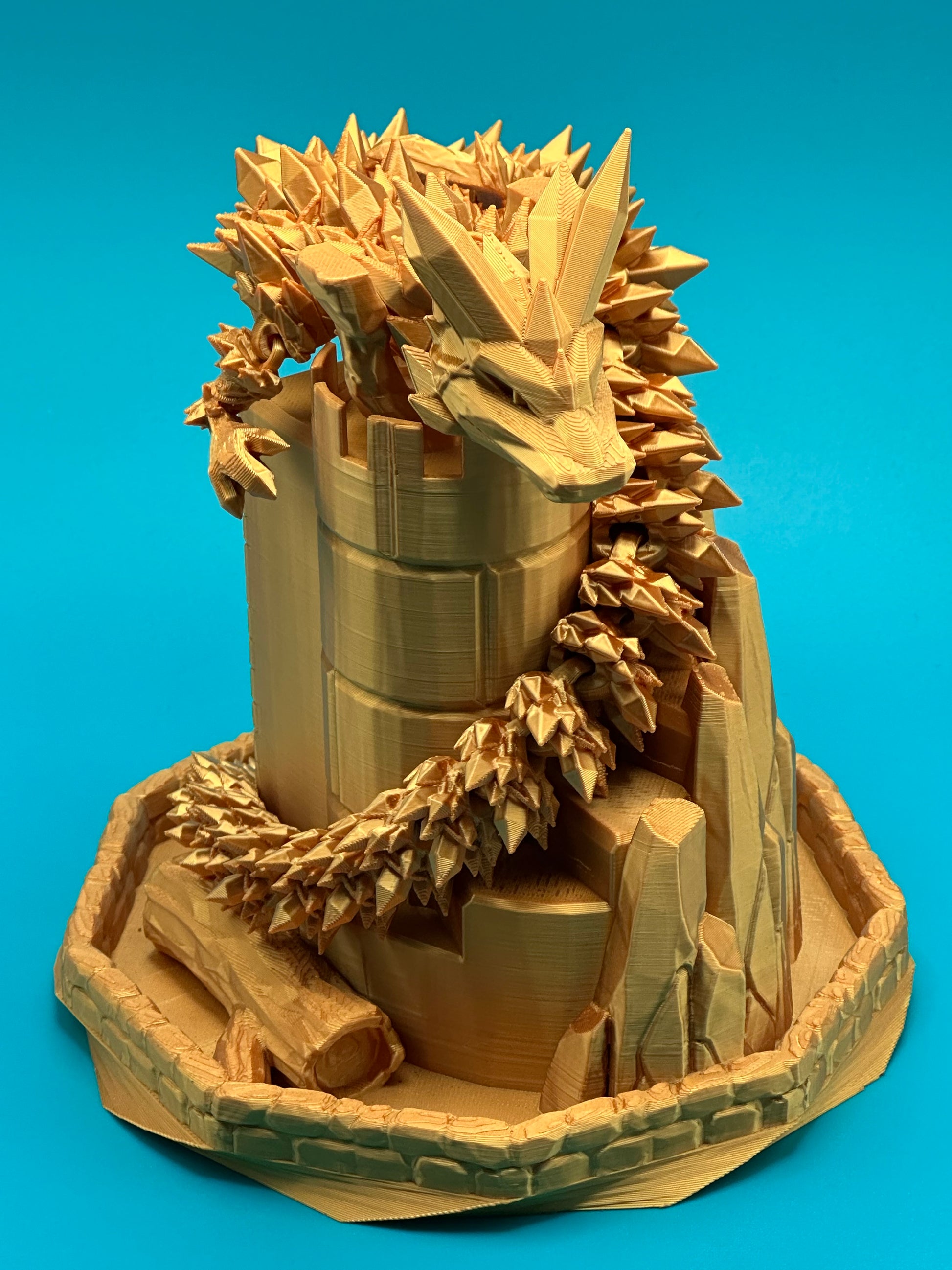 Present your dragons in majestic style with our Castle Dragon Stand, a sleek, stone-inspired base that evokes the timeless strength of a medieval fortress. With smooth, textured surfaces and solid, towering walls, this stand provides a sturdy, elegant platform to display your dragons. Its minimalist design focuses on the beauty of the stone structure, making it a perfect fit for any dragon collection.